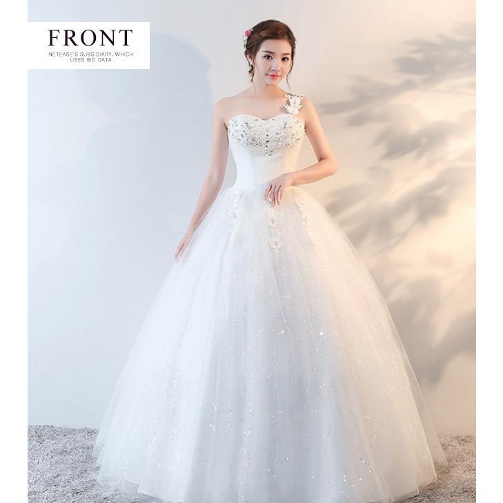人気 ウェディングドレス ショルダー ストラップ ワンショルダードレス パーティードレス カジュアル 結婚式 披露宴 二次会 前撮り パーティー かわいい エレガント 豪華 ハンドメイド サイズオーダーの通販 価格比較のビカム